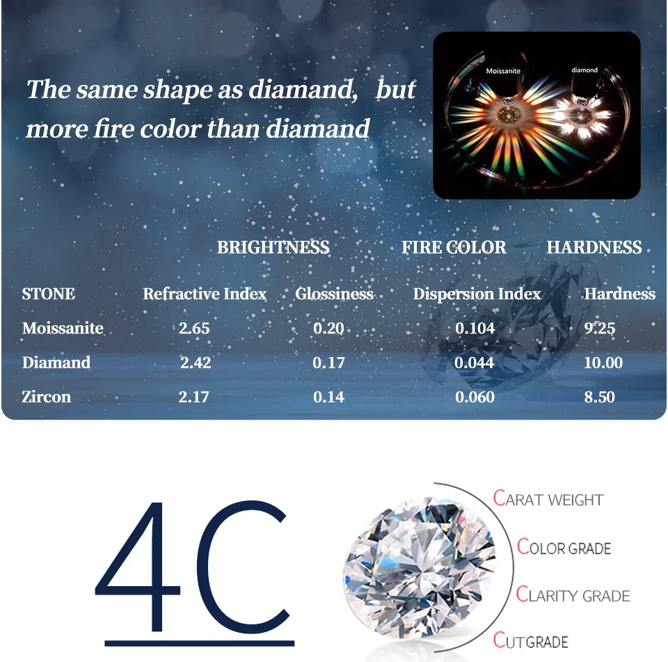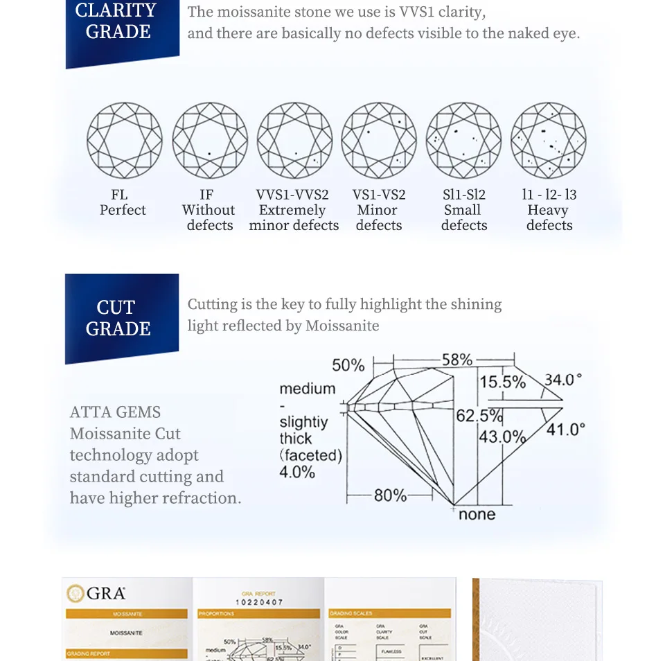 Main Stone: D Color VVS1 Moissanite Diamond