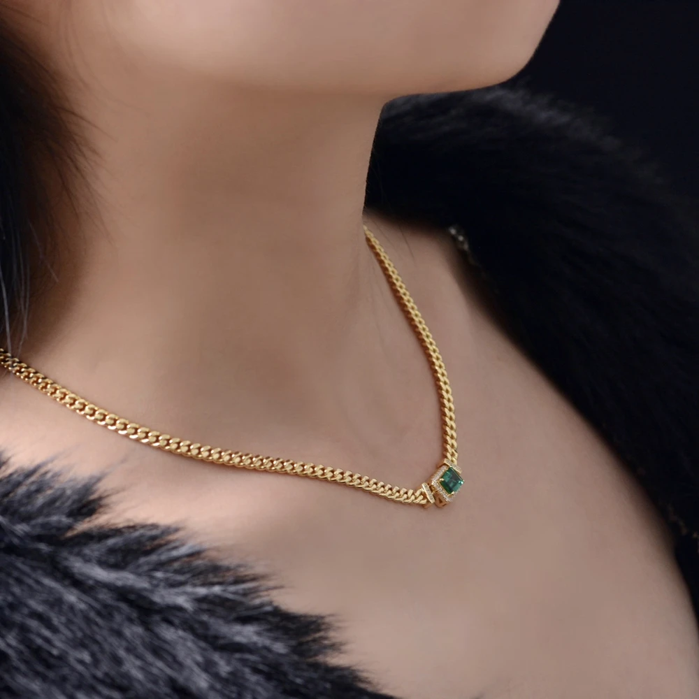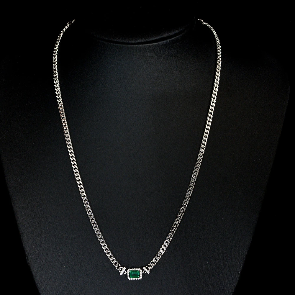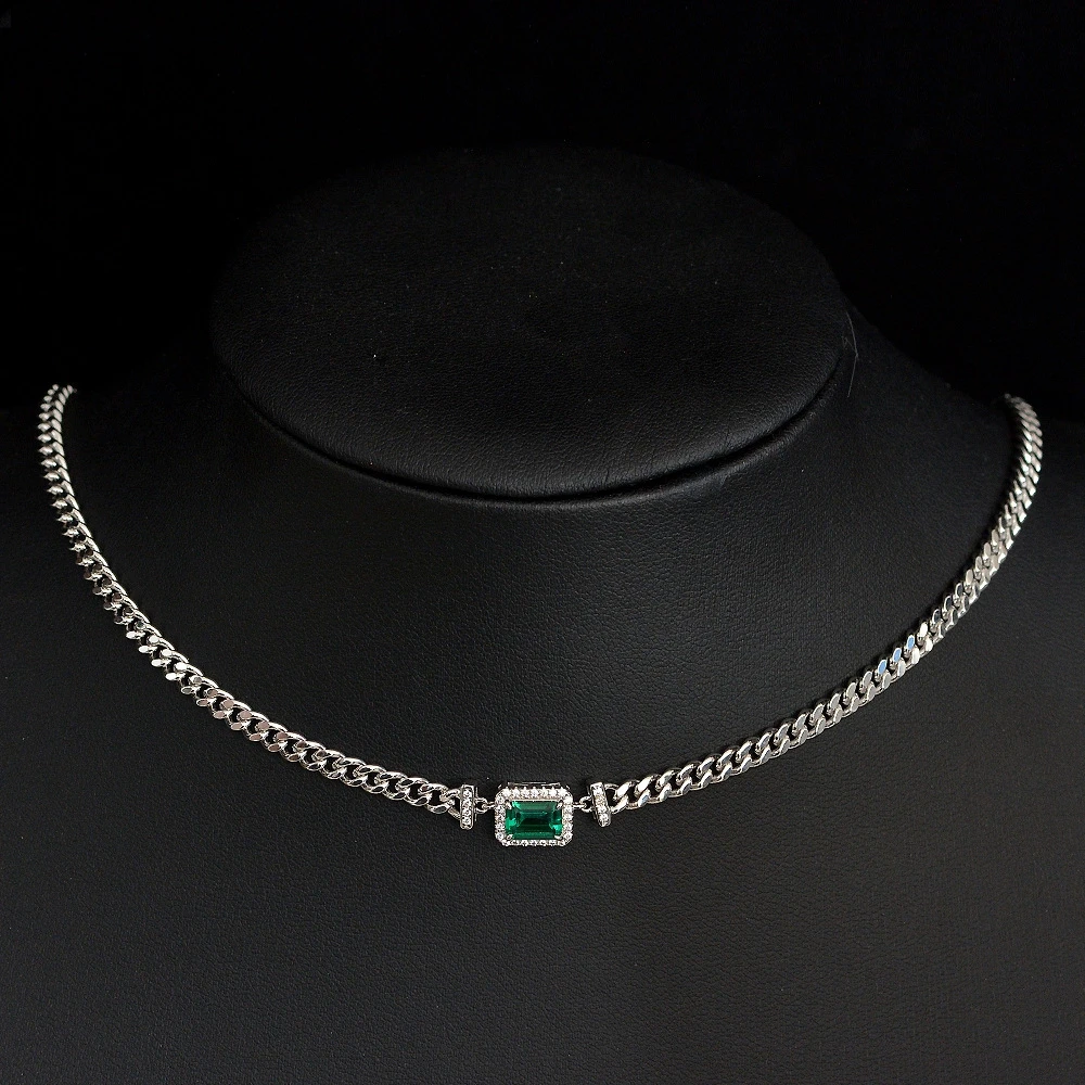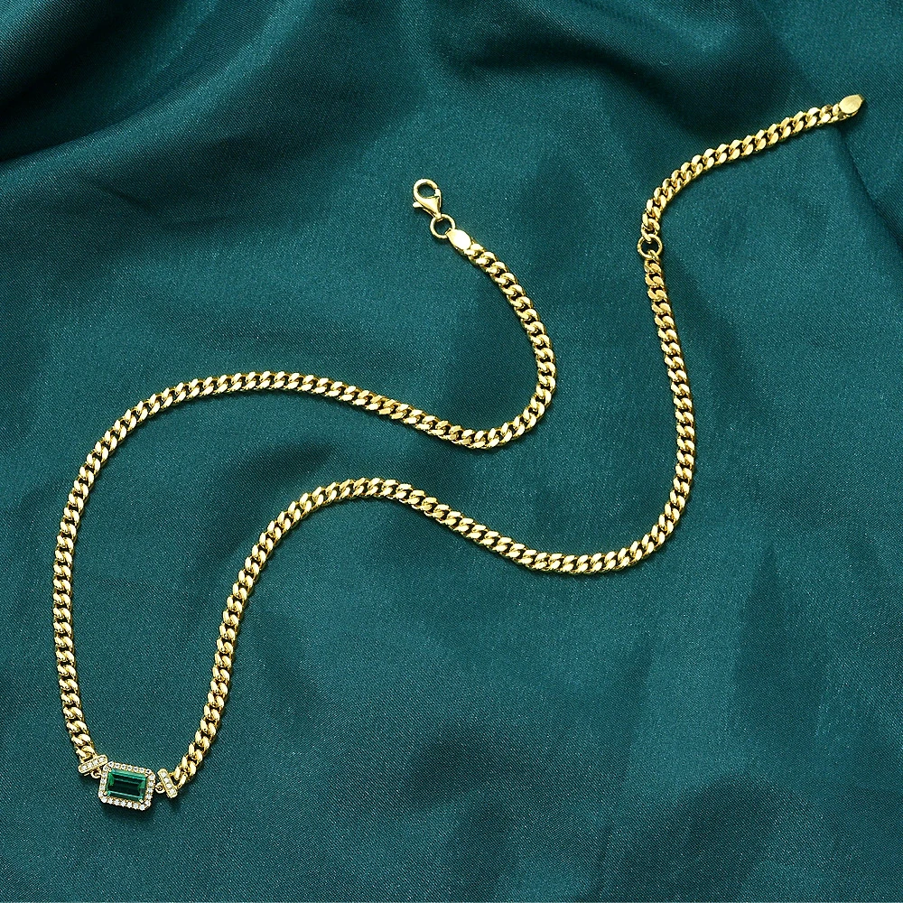 Wong Rain Vintage 925 Sterling Silver Emerald Cut Created Moissanite Emerald Gemstone Anniversary Pendant Necklace Fine Jewelry
