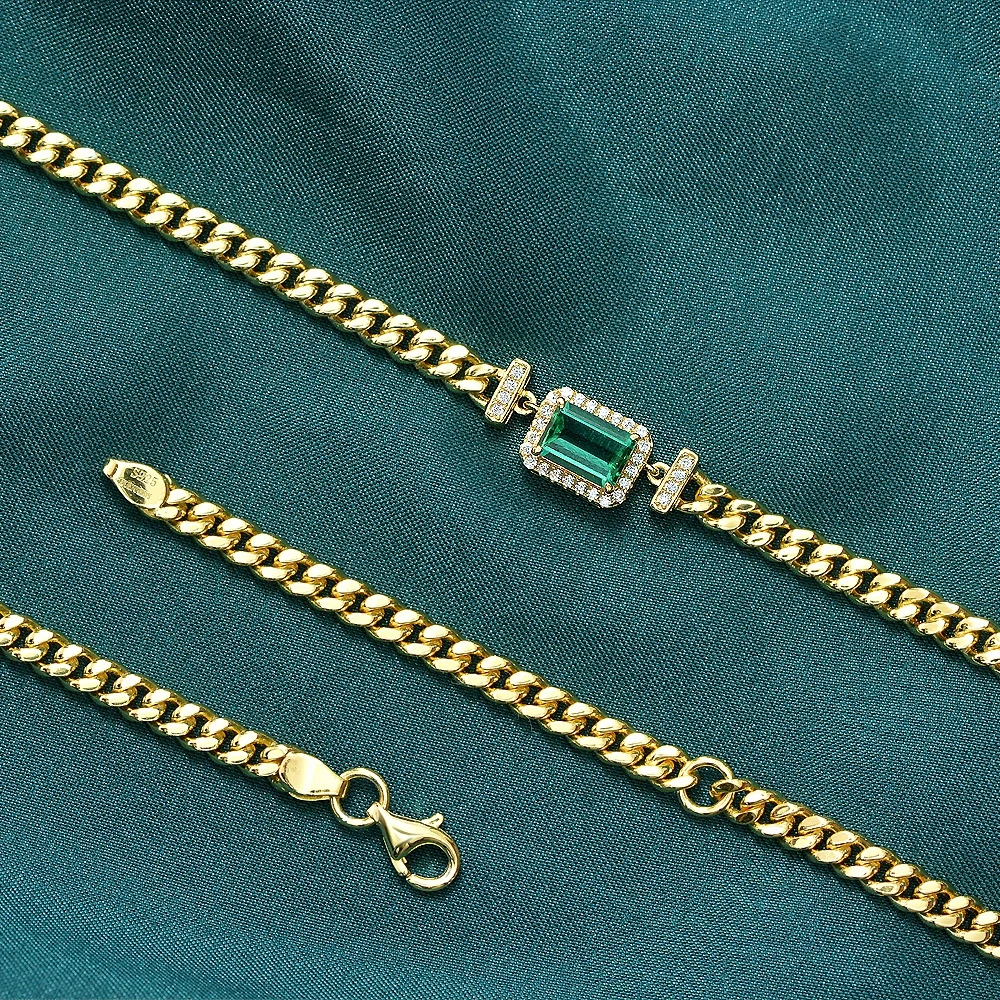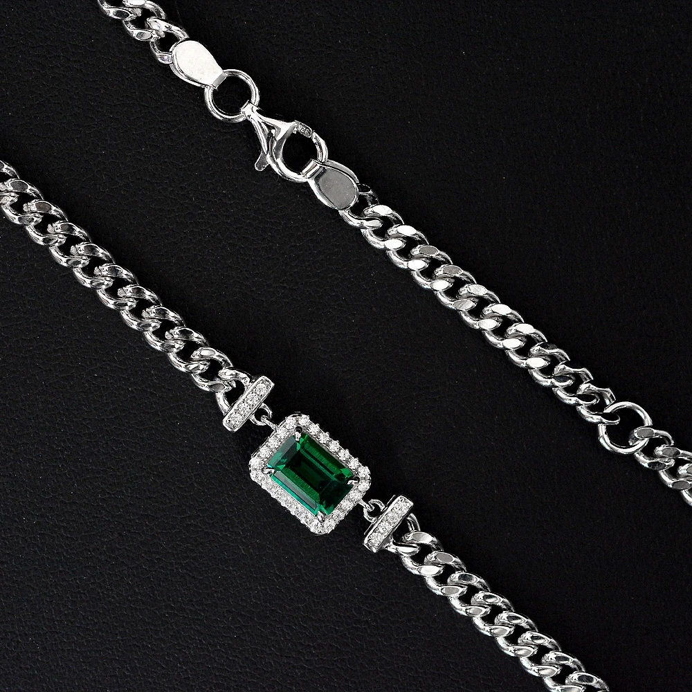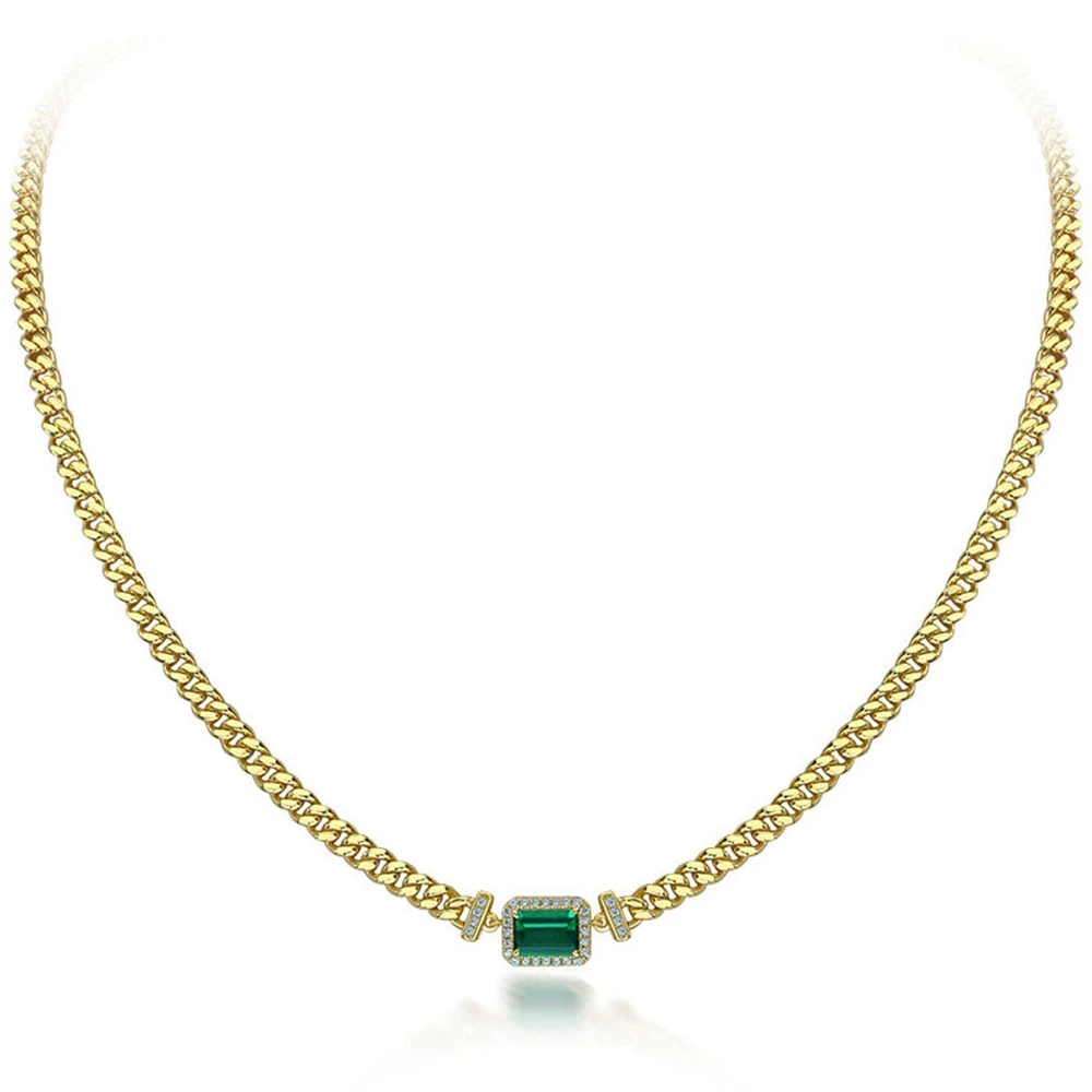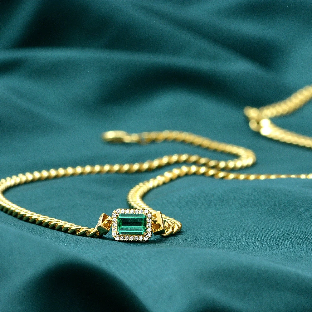 925 Sterling Silver Emerald Cut Created Moissanite Gemstone Anniversary Necklace