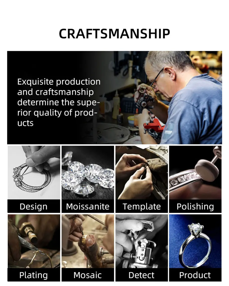 VVS moissanite stones go through half of the wedding band for women.The stones shine as real diamonds. And only real moissanite can pass diamond test .