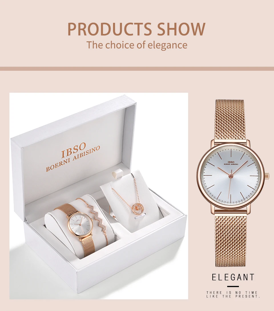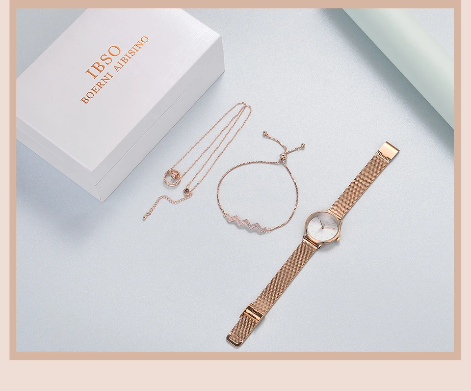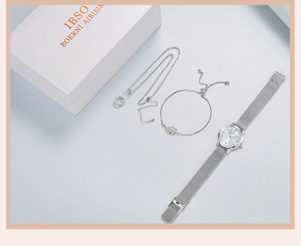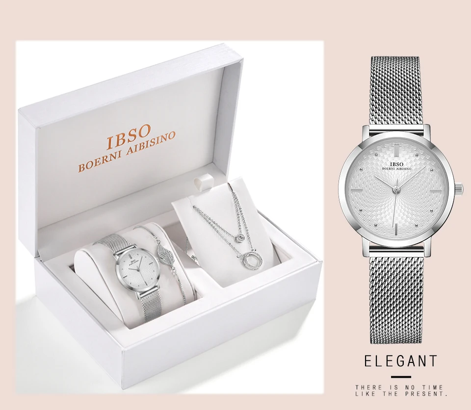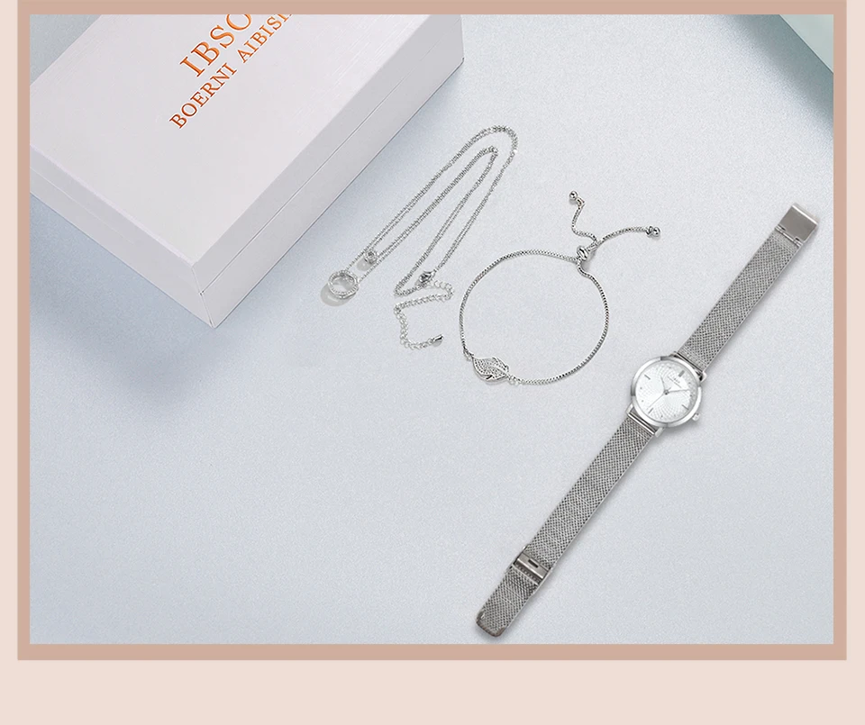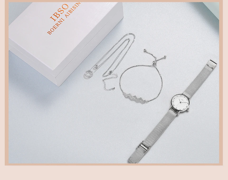Crystal Design Bracelet Necklace Watch Set Jewelry Set Fashion Silver Set