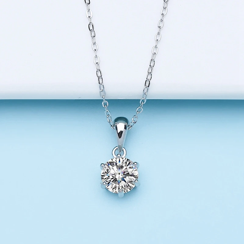 D Color VVS1 Moissanite Necklace 925 Sterling Silver 2 Ct Round Brilliant Diamonds Solitaire Pendant Necklace For Women Jewelry