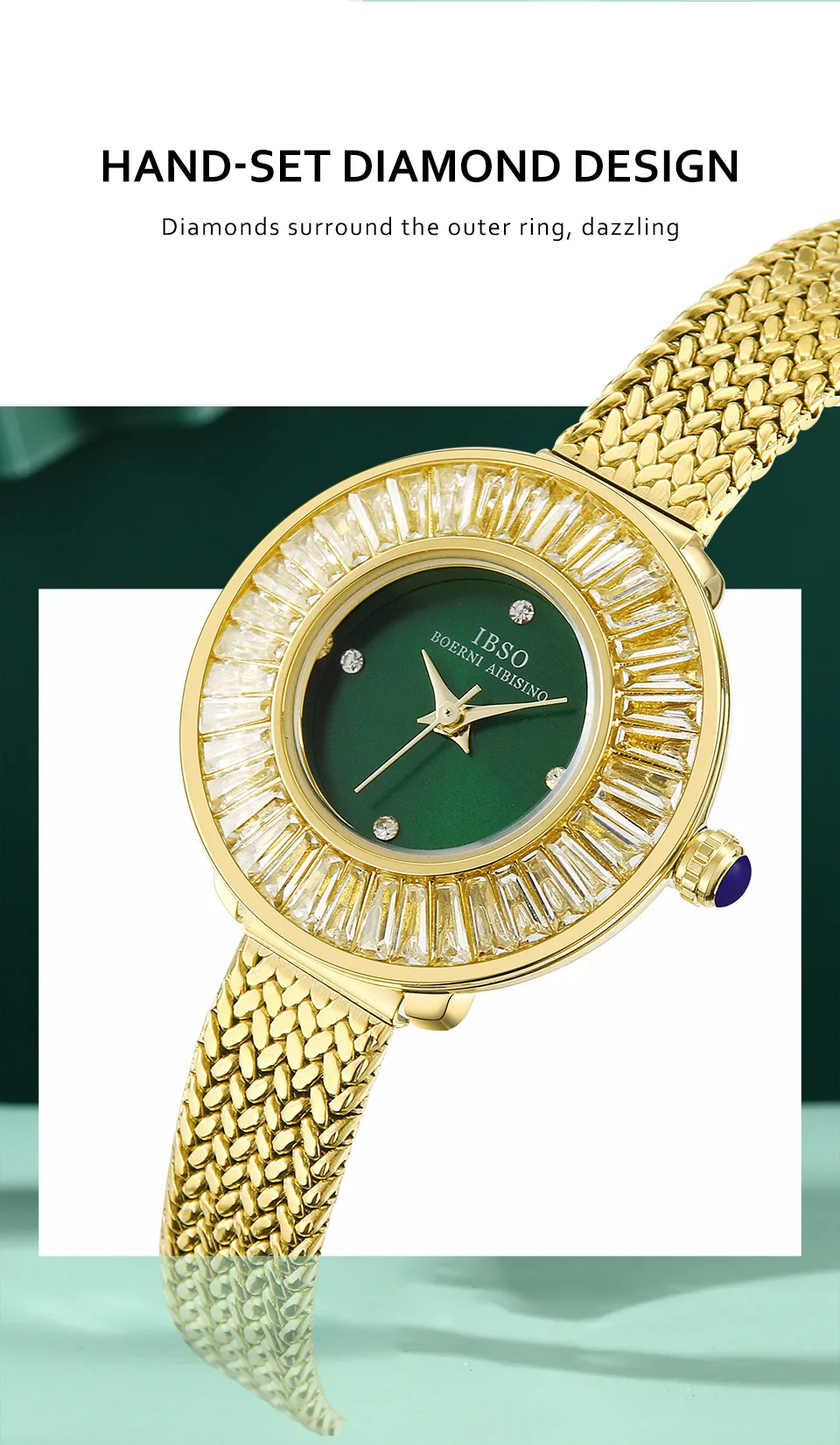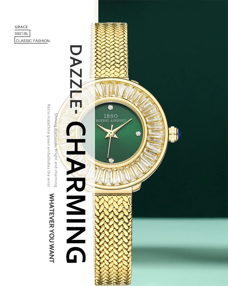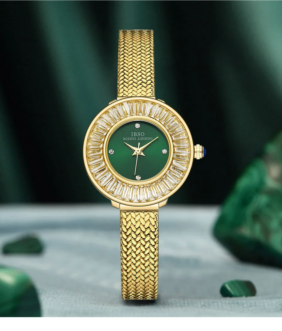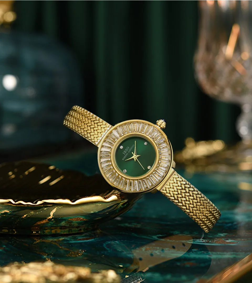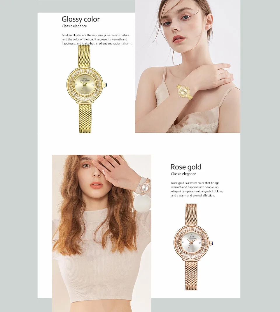 Gold Luxury Mesh Watch Zircon Shiny Stainless Steel Strap Elegant Waterproof