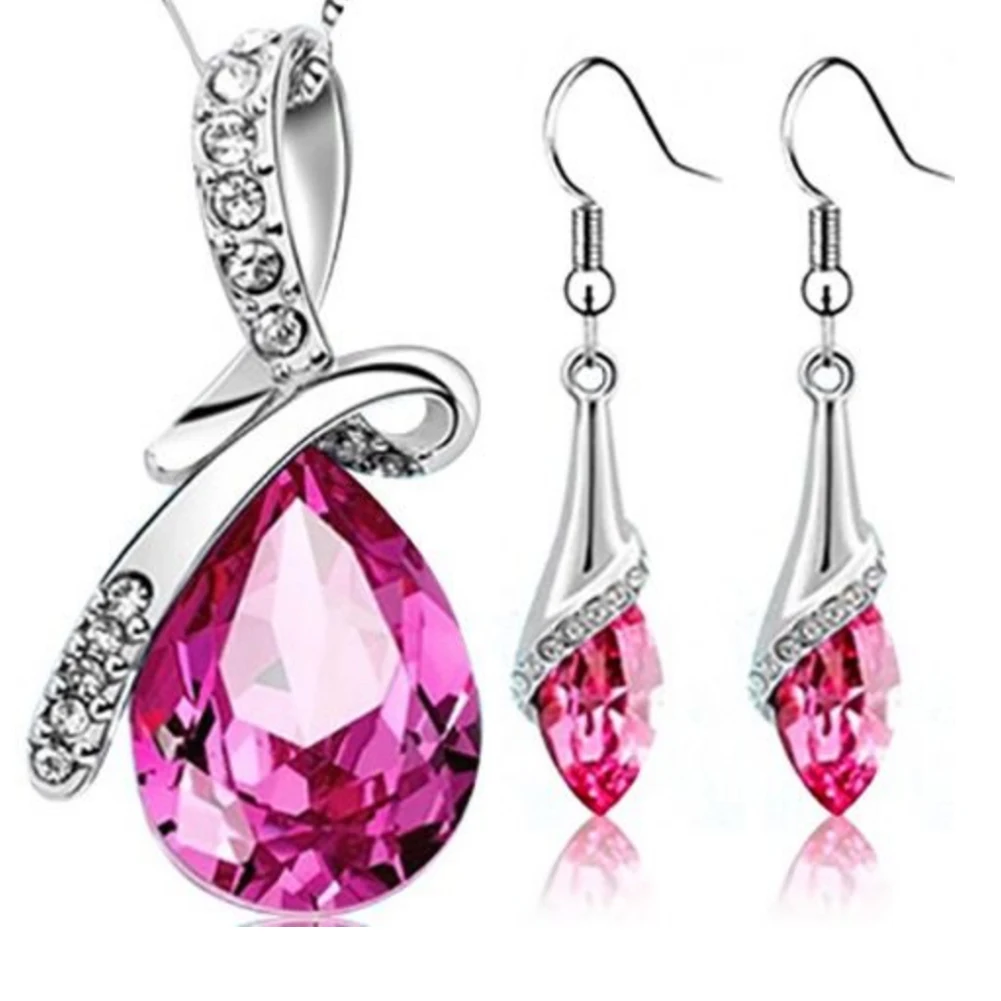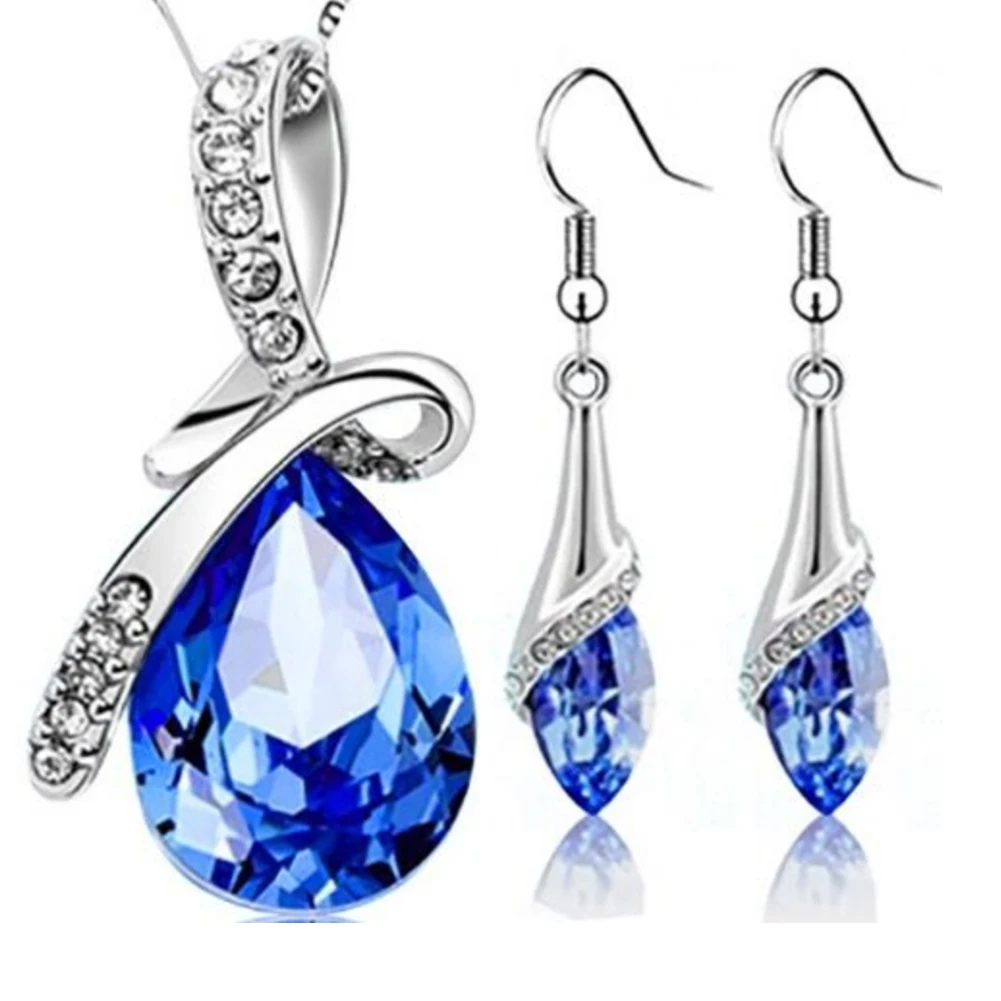Natural Gemstone Swiss Blue Topaz Amethyst Citrine Sterling Silver Necklace Set