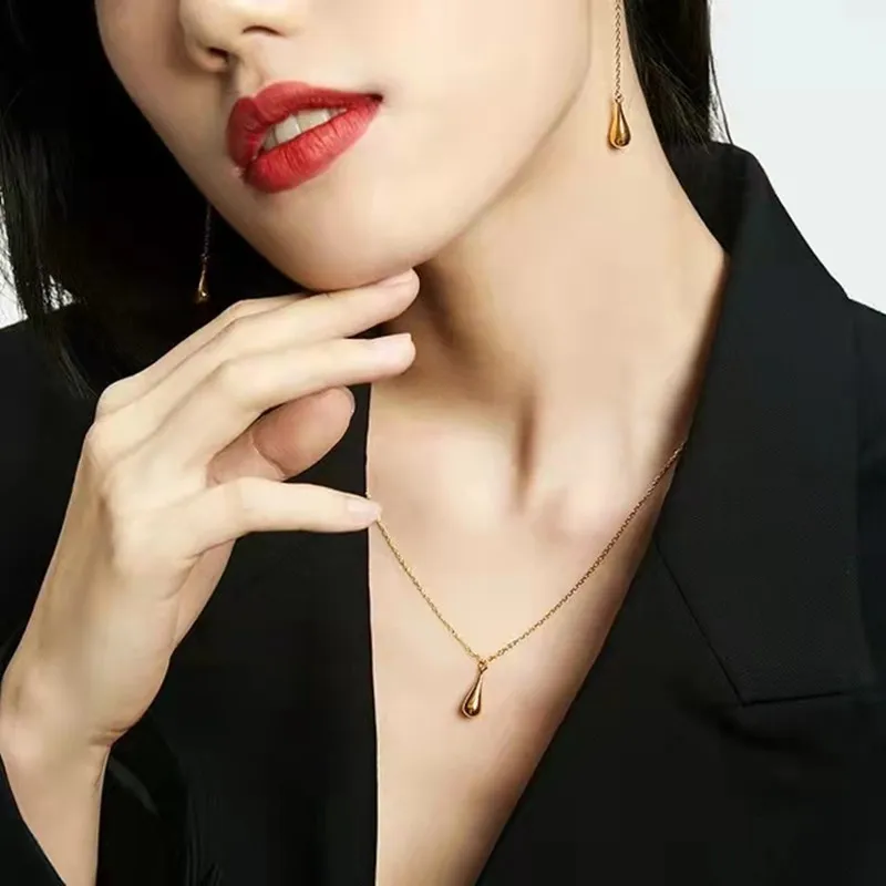 Pure 999 Water Drop Gold Pendant Gold Genuine New Clavicle 18k Gold Necklace