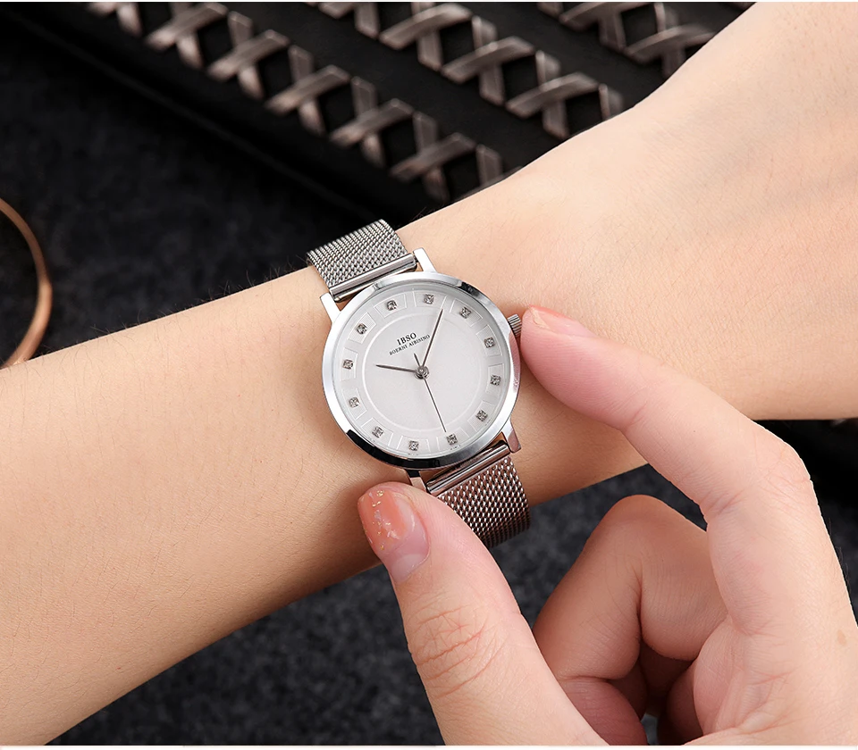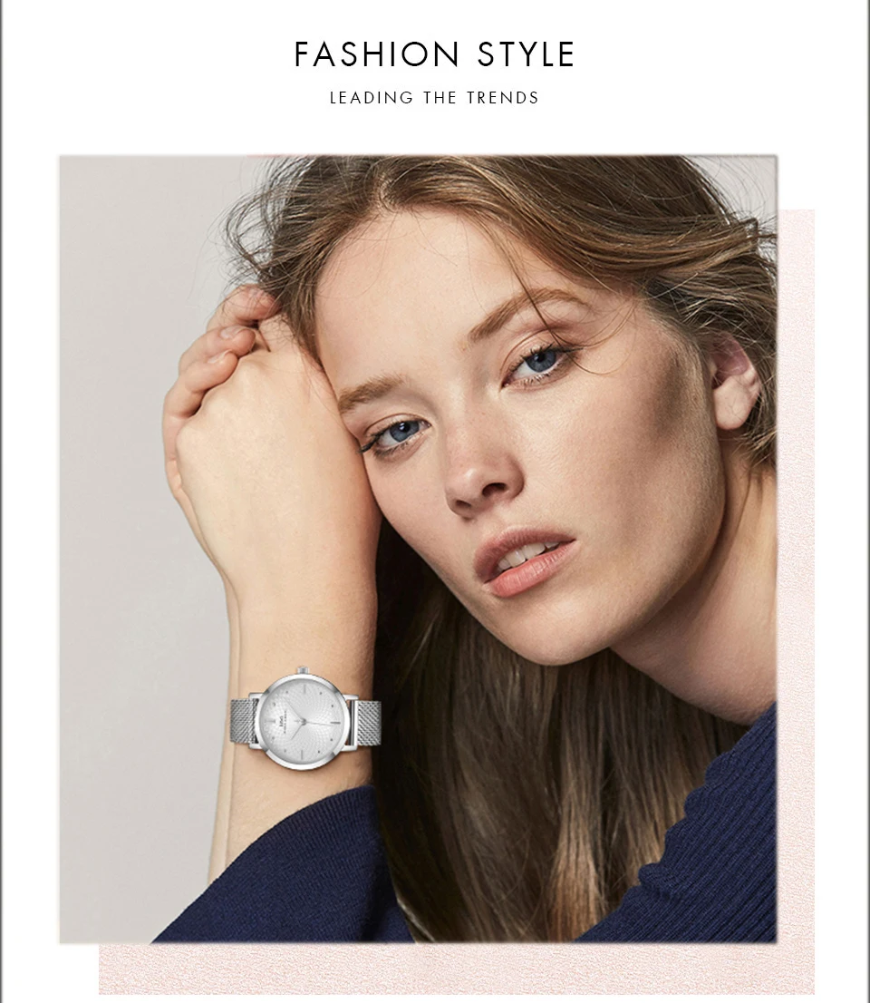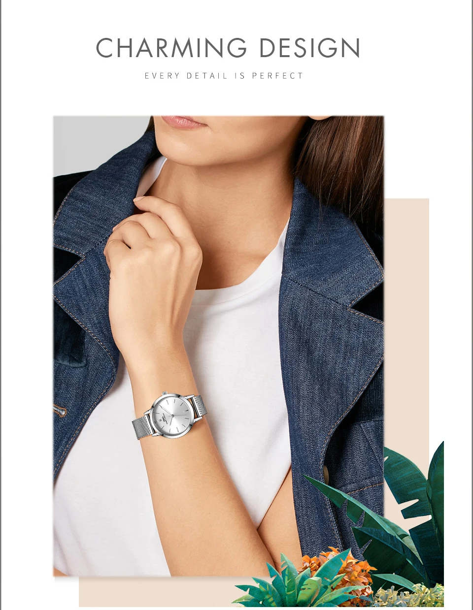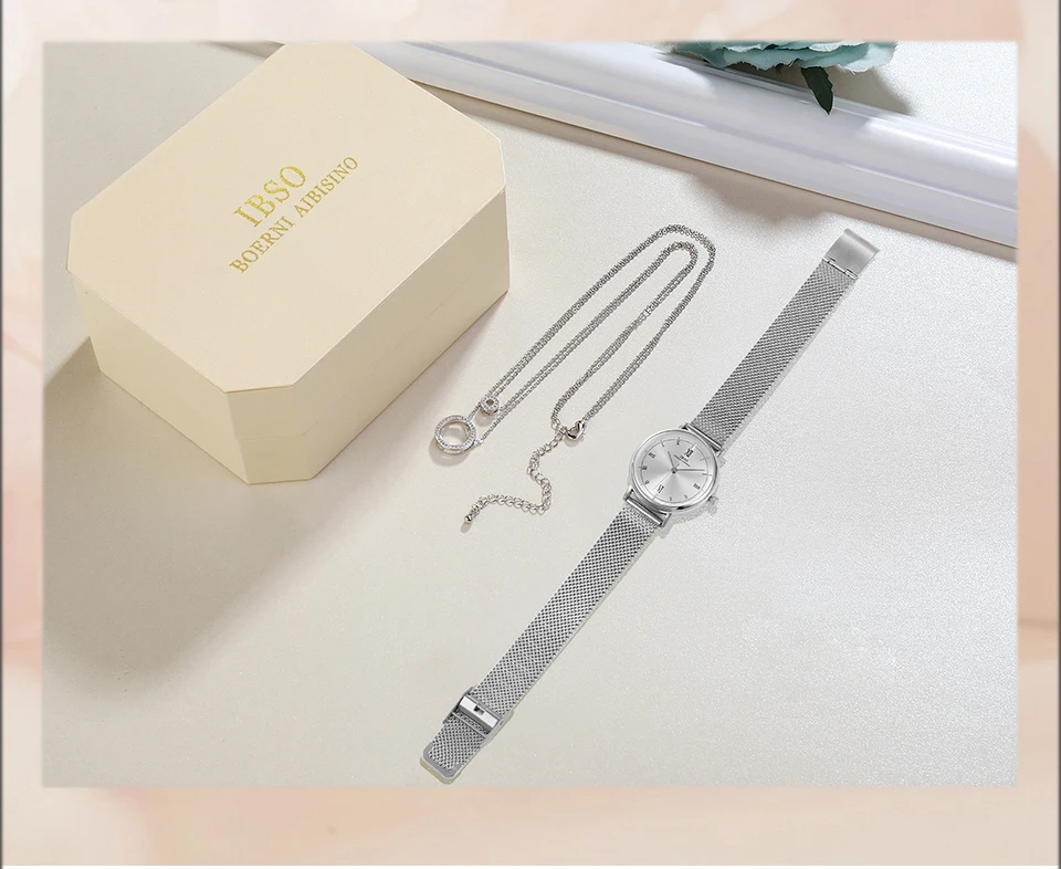 Quartz Wrist watch Necklace Earring Combination Set Women Metal Strap