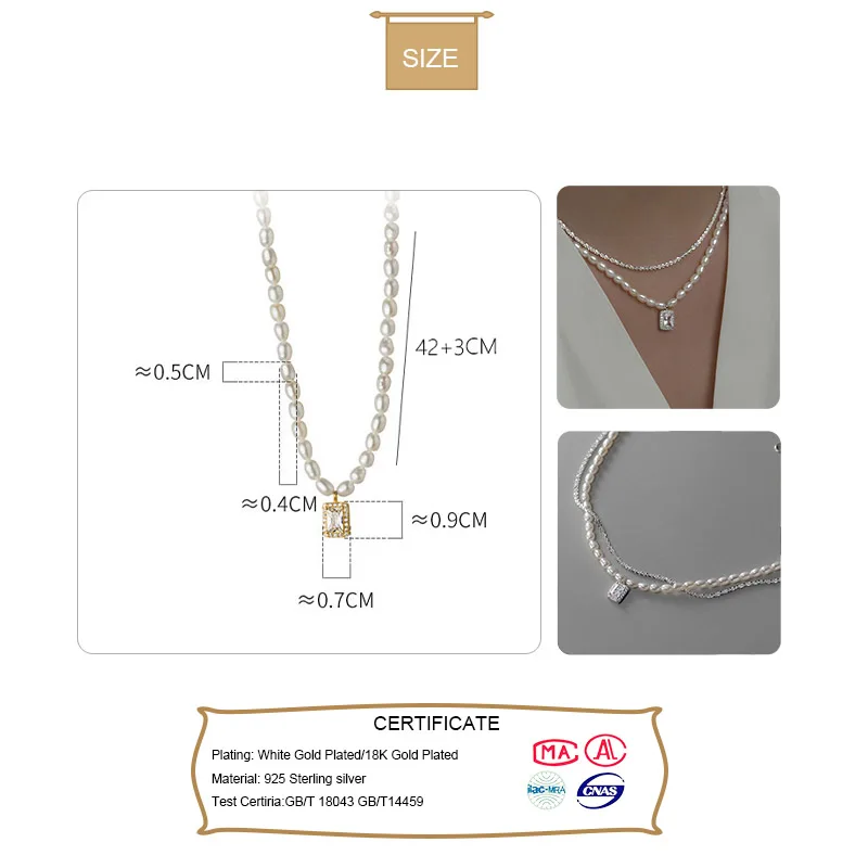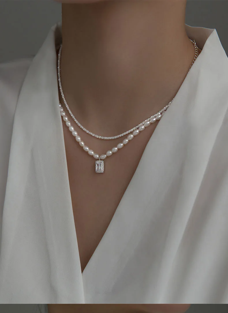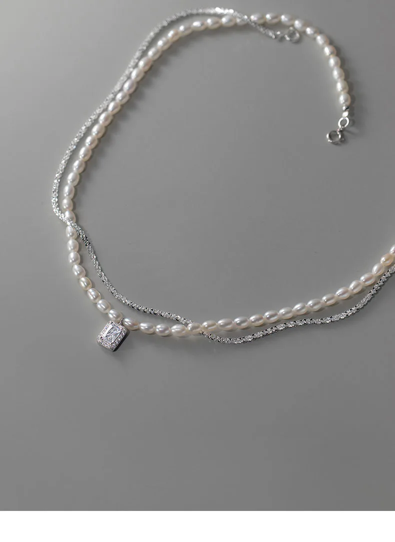 Real 925 Sterling Silver Fashion Double-deck Chain Beads Necklace