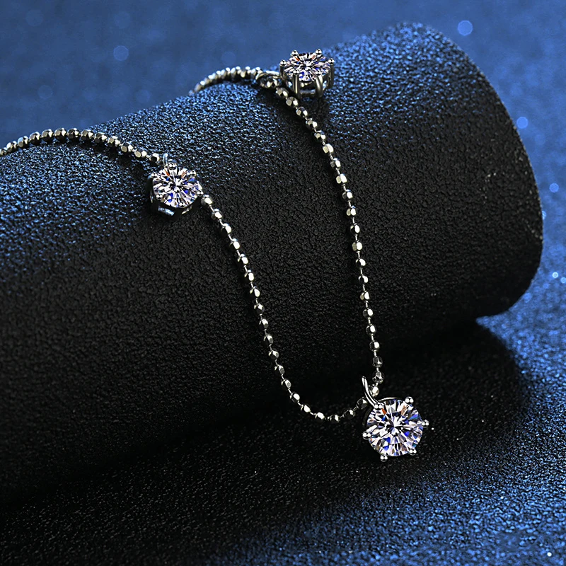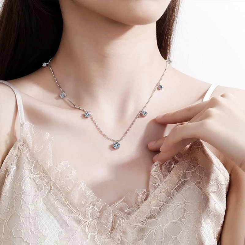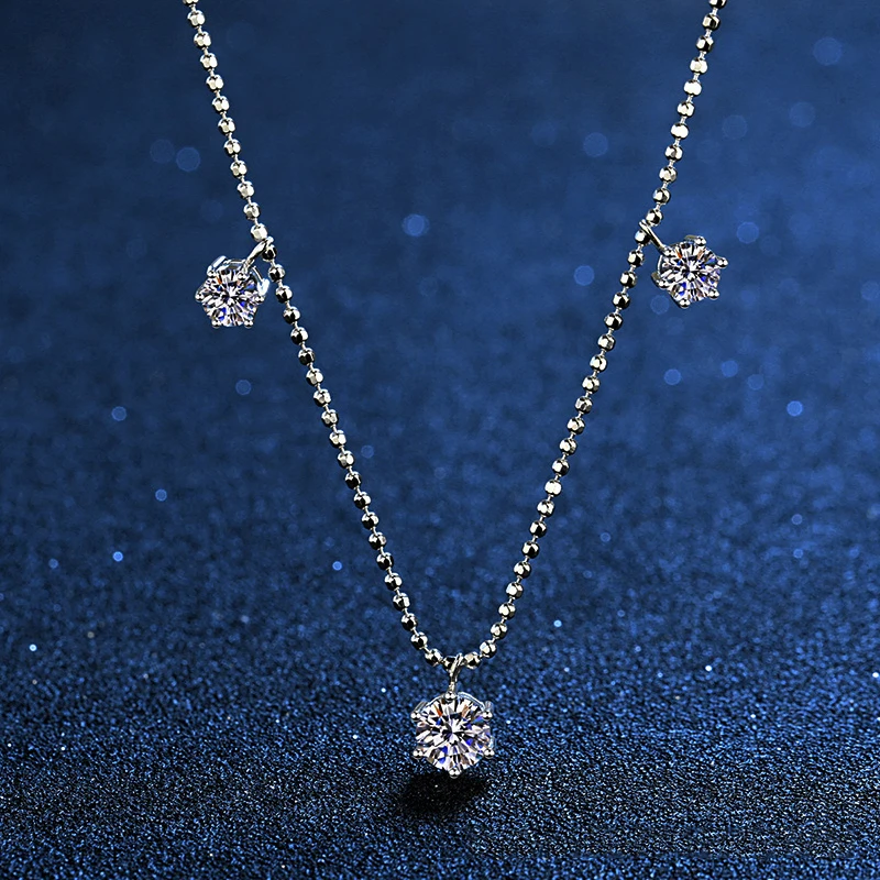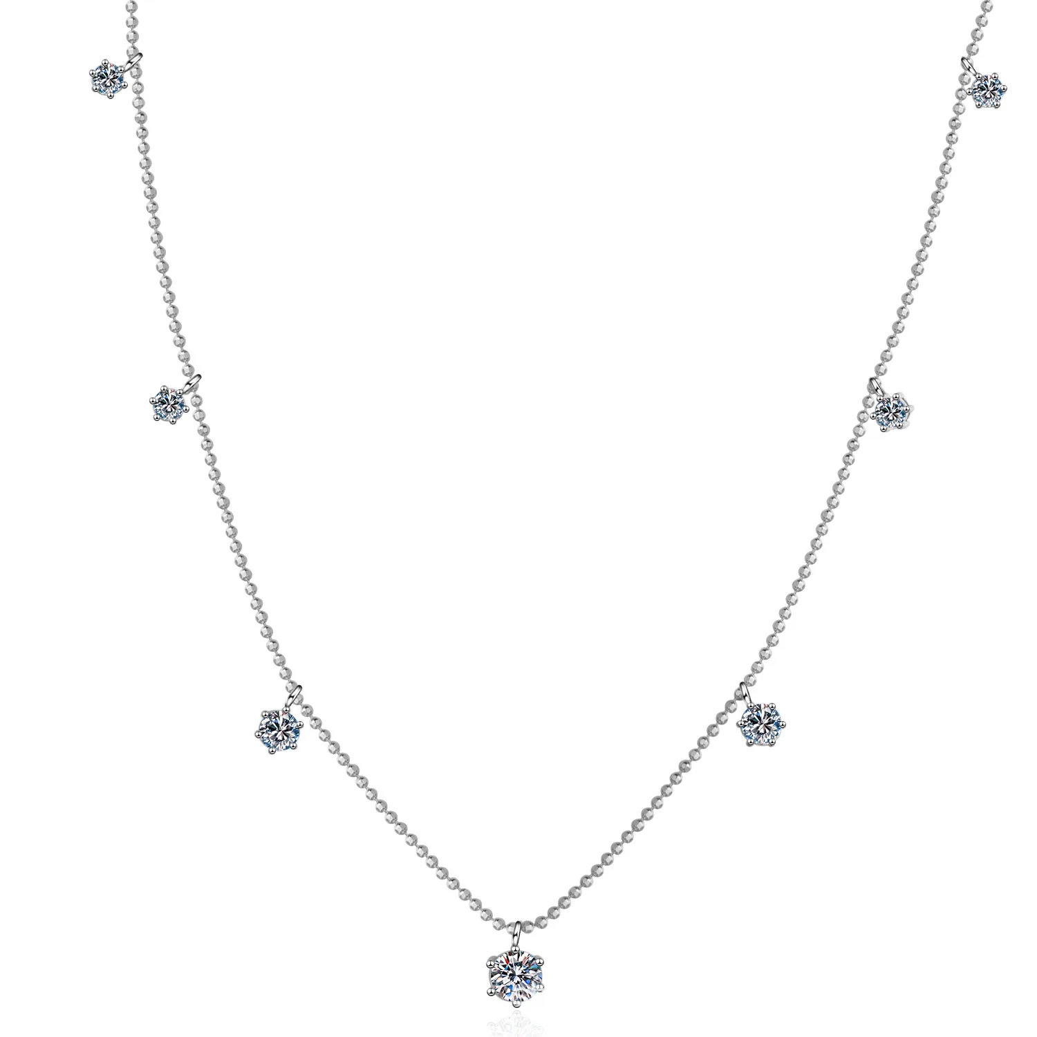 Real Round Cut Moissanite Diamond 7 Stone Necklace For Women Girls Sterling Silver 3.2CT VVS1 Lab Diamond Pendant Fine Jewelry