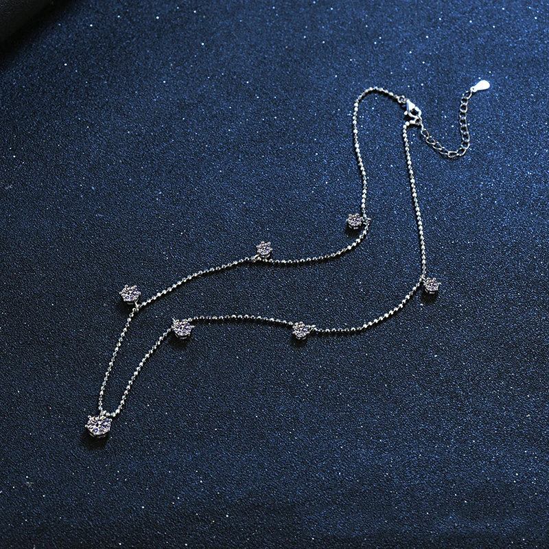Real Round Cut Moissanite 7 Stone Necklace Sterling Silver 3.2CT VVS1 Diamond