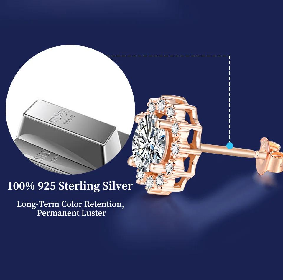 Round Cut 1 CT Diamond Moissanite Rhodium 925 Silver D Color Earrings